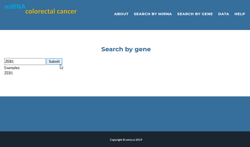 Here is a step-by-step tutorial about the miRNA-mRNA expression atlas. Users can study the expression of miRNA and mRNA in colorectal cancer samples through web forms in many ways. Currently, users can search according to the names of miRNA