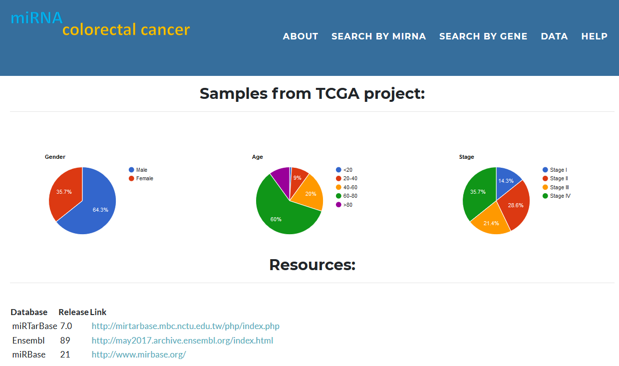 : a freely available knowledge base for studying the expression of miRNAs and their target genes in colorectal cancer.