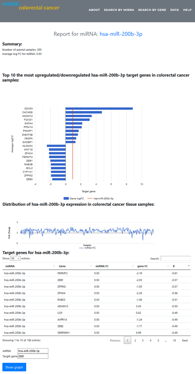 or start typing and then select miRNA name from list of values to find more about miRNA and their target gene expression in colorectal cancer:
