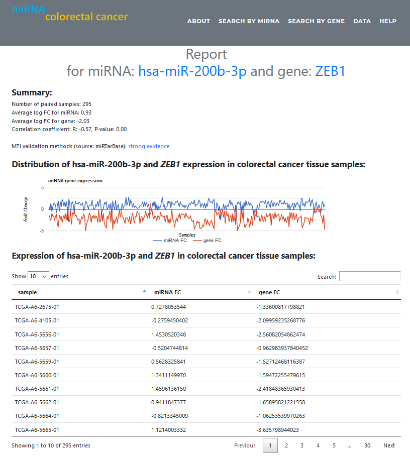 Here is a step-by-step tutorial about the miRNA-mRNA expression atlas. Users can study the expression of miRNA and mRNA in colorectal cancer samples through web forms in many ways. Currently, users can search according to the names of miRNA